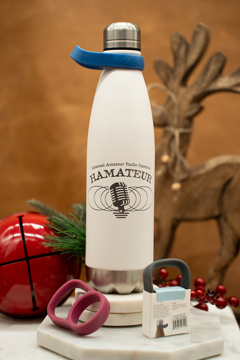 Water bottle (25oz.). Double-walled stainless steel insulated bottle professionally laser engraved with the Hamateur Radio logo.